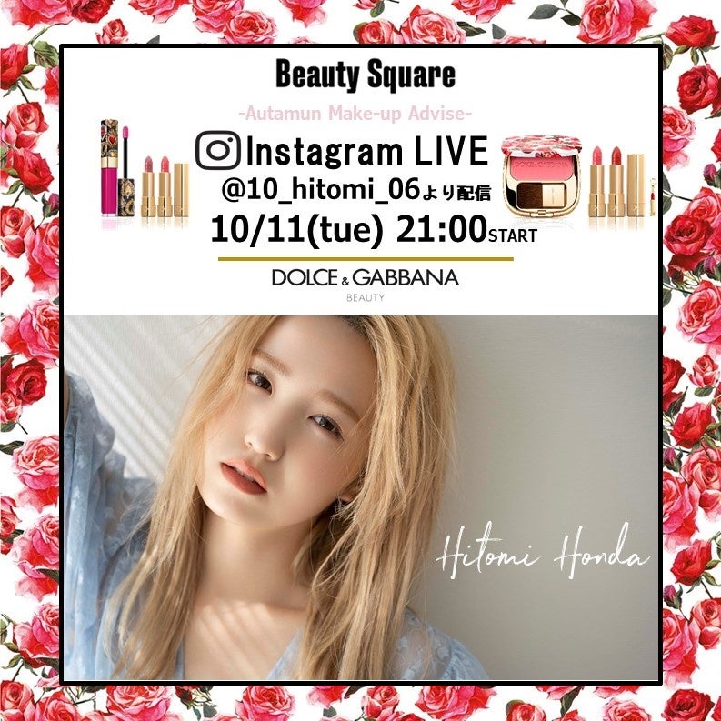 10/11(火)21:00~本田仁美さんによる秋を楽しむローズメイクのインスタライブを開催。インスタライブロードショーで、毎日ドルチェ&ガッバーナ ビューティの魅力を紹介!#ドルガバコスメ
