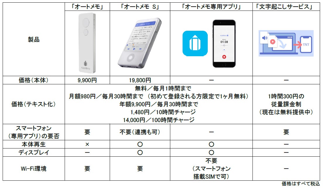 (・「オートメモ」本体には音声の再生機能はなく、「オートメモ」のご利用には専用アプリが必要です。