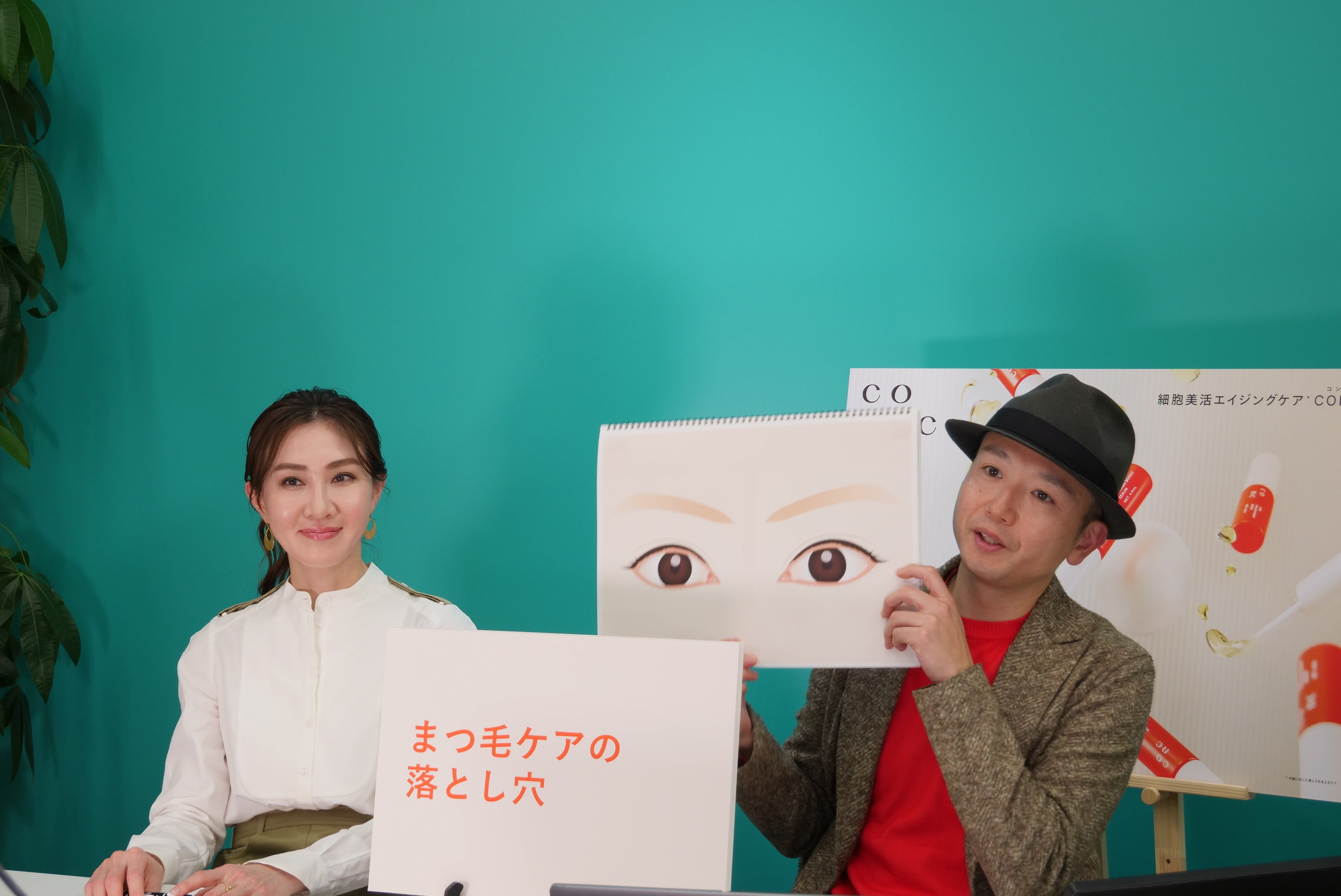 効果的な医薬品とまつ毛美容液の使い分けについて、貴子先生は「医薬品の外用薬は、あくまで育毛を目的としたものである為、今生えているまつ毛のキューティクル等をケアするということはできません。まつ毛のより完璧な育毛ケアとしては、医薬品の外用薬に加え、まつ毛美容液の併用が最も効果的なのでは、と思います。」と提案しました。