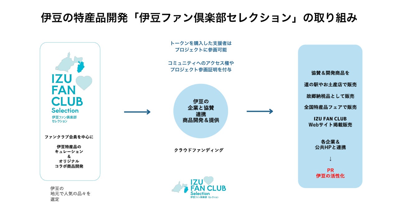 伊豆ファン倶楽部では今年度、マーケティング、デジタル、デザインのプロフェッショナルとともに、伊豆の名産品開発「伊豆ファン倶楽部セレクション」に取り組み、地域の魅力ある名産品・体験の開発と発信を共創していきます。詳しくはFiNANCiE内コミュニティをご確認ください。