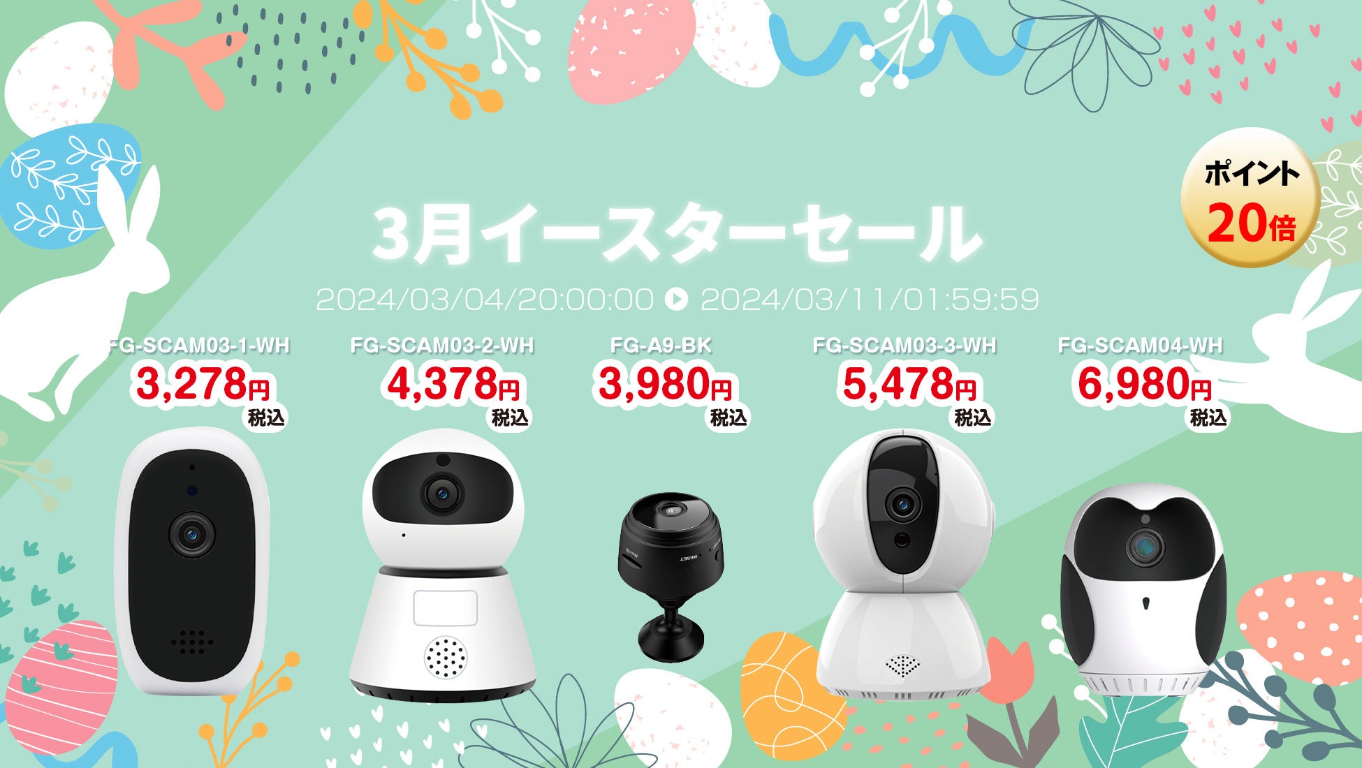 セキュリティカメラポイント20倍!楽天「Show !t」は3月4日(月)開始の楽天スーパーセールに参加。配線不要!専用スタンドでどこでも設置可能なセキュリティカメラがおすすすめです。