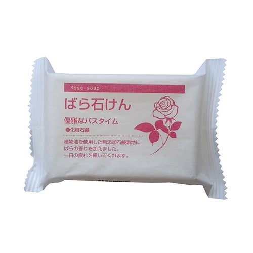 配合成分がお肌にやさしく作用する無添加石けんです。薔薇、ティーツリー、シアバター。