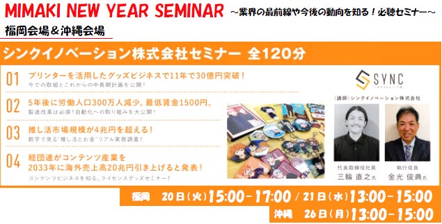 1/26には、ライセンスグッズセミナーを開催!ミマキエンジニアリング製プリンタを駆使した人気グッズビジネスや実績をご紹介