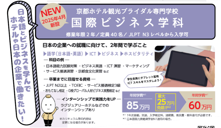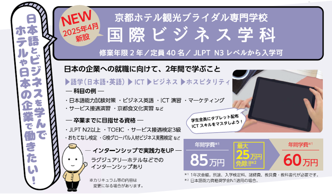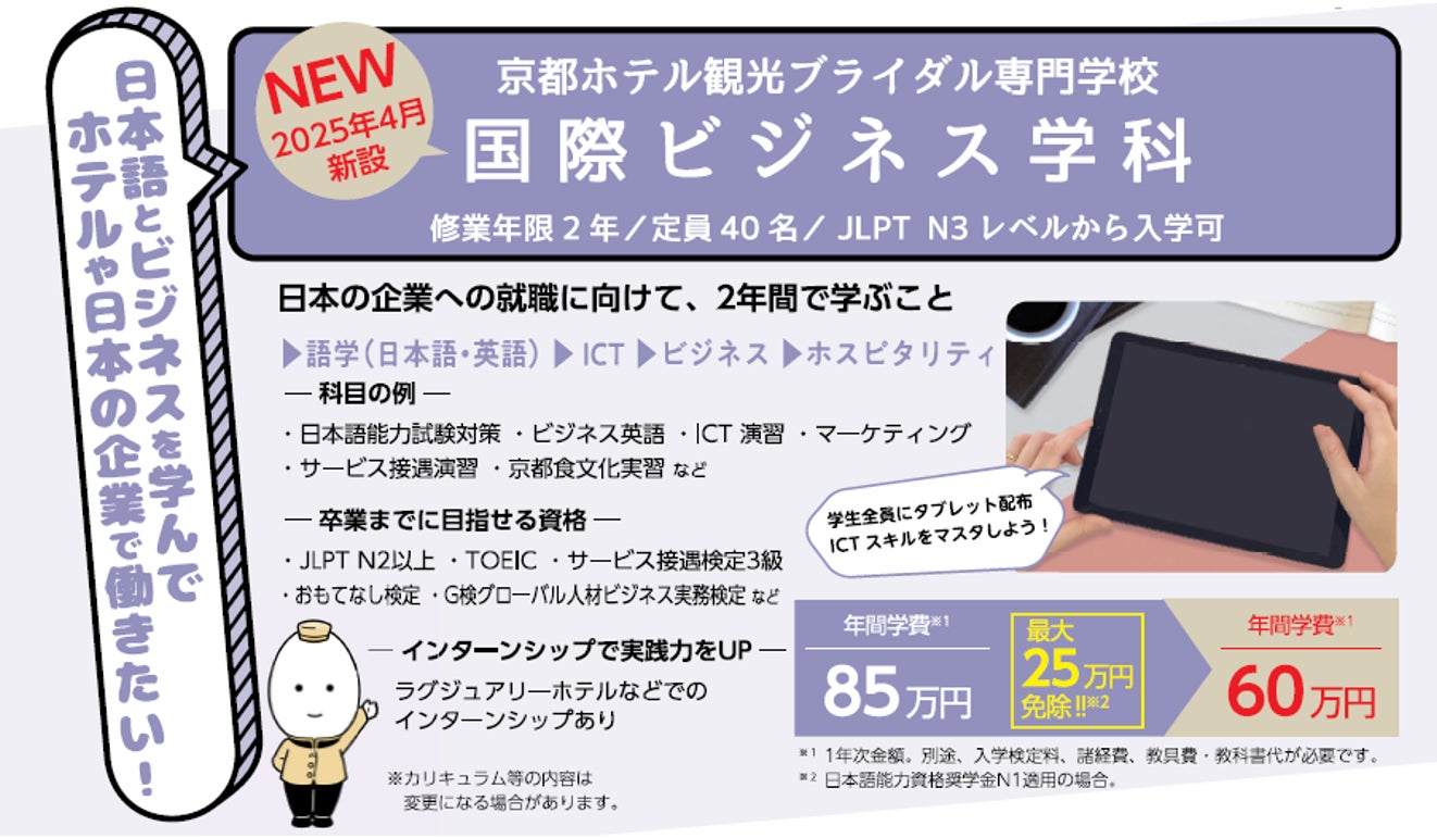 2025年4月、京都ホテル観光ブライダル専門学校に「国際ビジネス学科」を新設