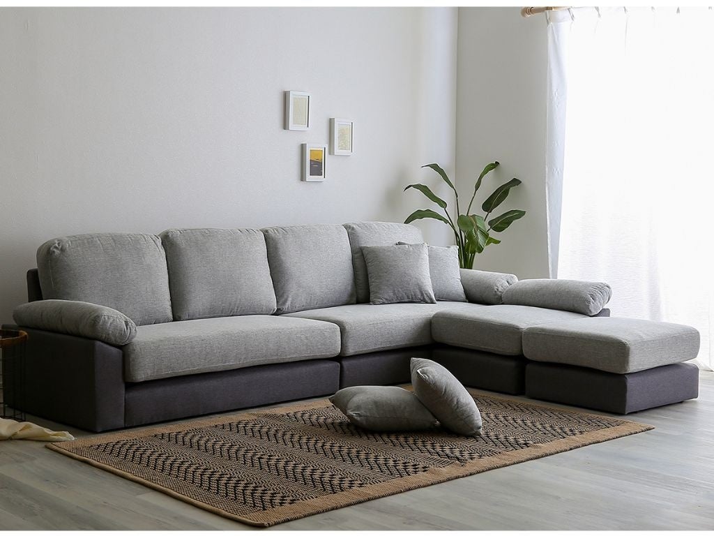 【商品名】布張りツートン6人掛けコーナーカウチソファ