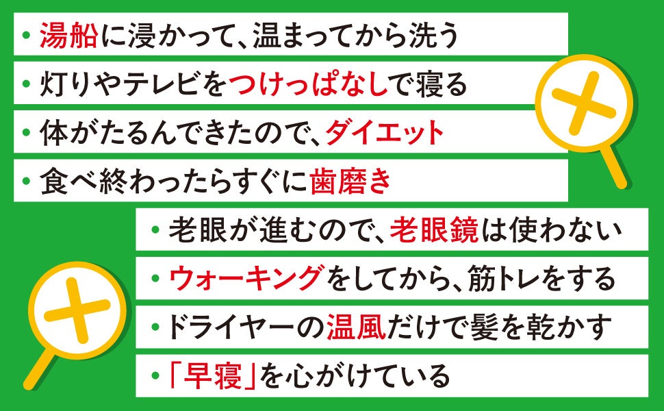 多くの人は、健康や美容のためによかれと思って行動している。糖質を控える、清潔を保つ、たっぷり休む――。どれも間違っていないように見えるが、体の仕組みや最新の知見から見ると、かえって老化を早めてしまうケースは少なくない。