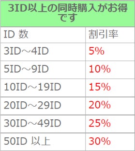 ☆3ID以上同時購入での割引サービス詳細はこちら