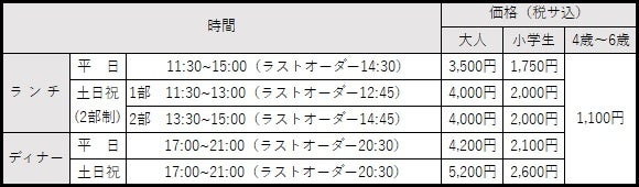 電話 082-262-1132(レストラン総合案内 10:00〜19:00)