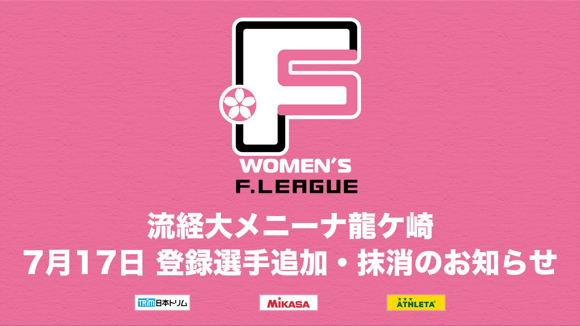 7月17日、女子Fリーグ2024-2025において、流経大メニーナ龍ケ崎の登録選手が追加・抹消されましたのでお知らせいたします。