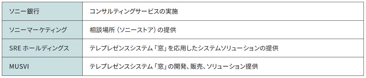 ソニー銀行株式会社(代表取締役社長:南 啓二/本社:東京都千代田区/以下 ソニー銀行)は、2023年3月1日(水)よりソニーストア 銀座において、ソニーグループ株式会社R&Dセンターの技術提供を受け、MUSVI株式会社が開発し、SREホールディングス株式会社(代表取締役 社長 兼 CEO:西山 和良/本社:東京都港区)が展開するテレプレゼンスシステム「窓」(以下「窓」)を活用したリモート相談を開始しますのでお知らせします。ソニーストアへの設置は、ソニーストア 大阪に続き2店舗目となります。