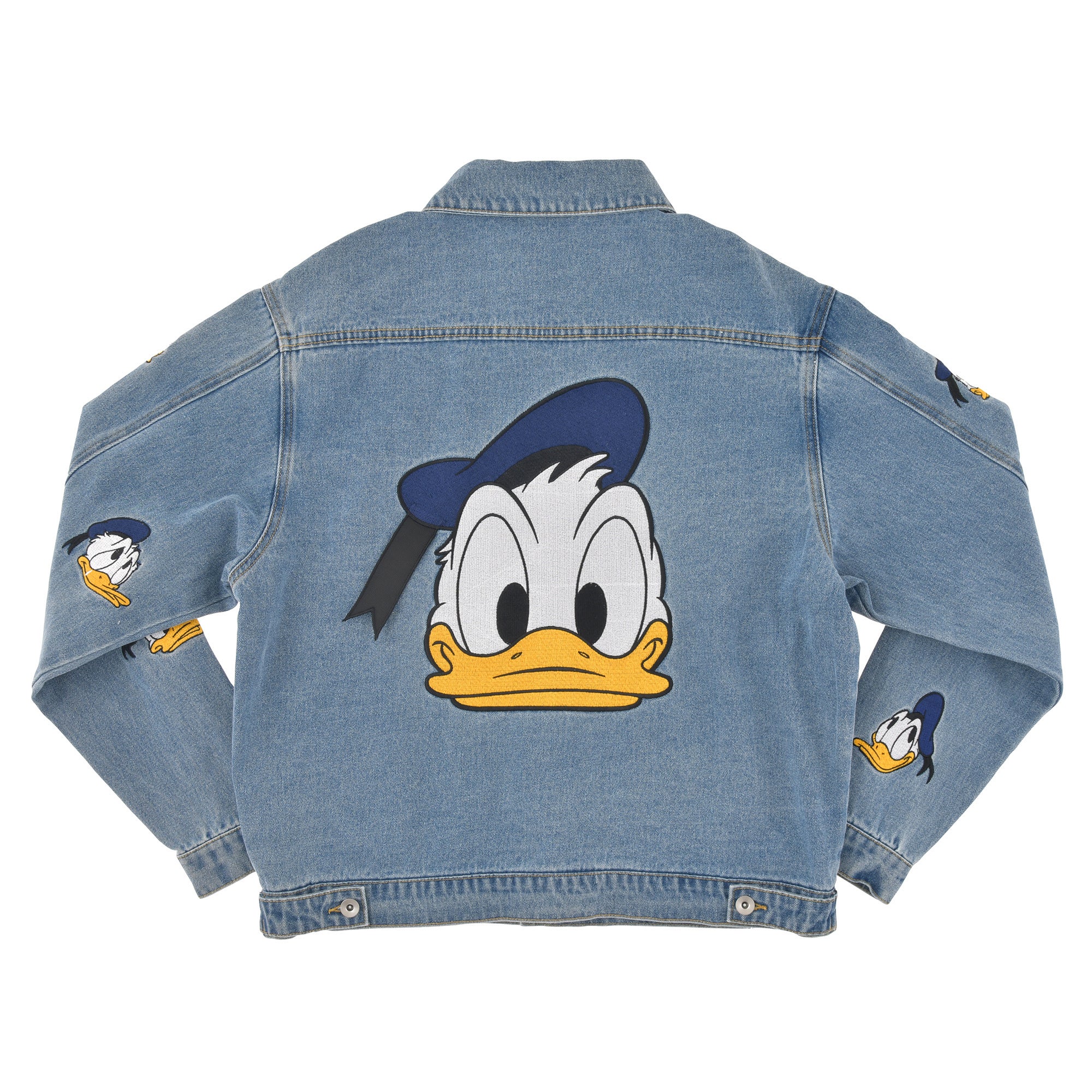 ラインナップは、前後に施されたドナルドのイラストが映えるブルーのストライプ柄のシャツをはじめ、背中のアートがポイントのデニムジャケット、アートが散りばめられたキャンバス生地のトートバッグ、内側にドナルドのアートがデザインされた傘など、遊び心溢れるファッションアイテムをご用意しました。