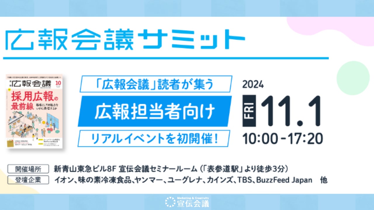 株式会社宣伝会議は、月刊『広報会議』を冠としたイベント「広報会議サミット」を11月1日(金)に初開催いたします。