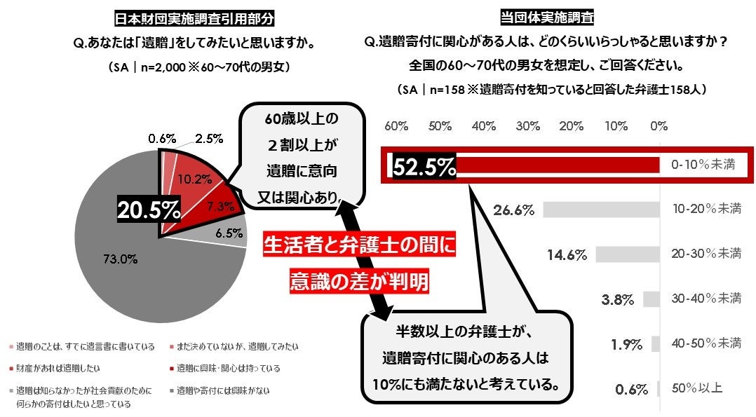 - 生活者と弁護士の遺贈寄付に対するスタンスの違いが明らかに。