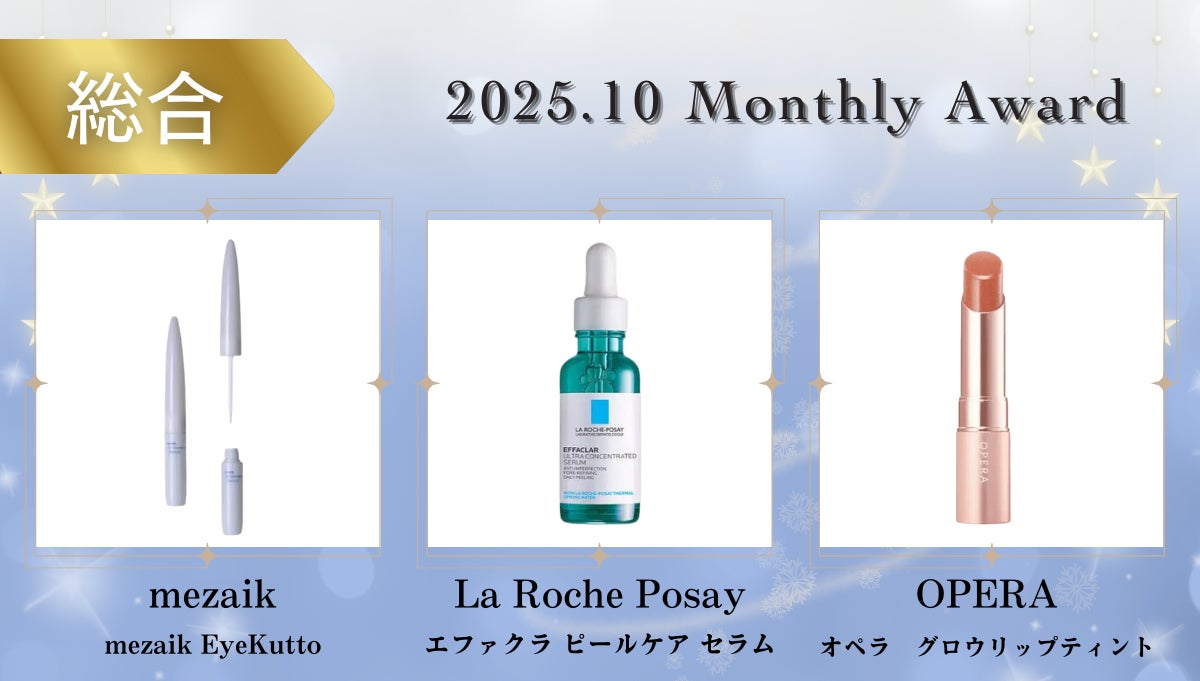 COSMEbi月間ベストコスメでは、COSMEbiユーザーのリアルなクチコミとSNSの話題性をもとに3か月の集計期間を通して支持された2025年10月のベストコスメを発表いたします。