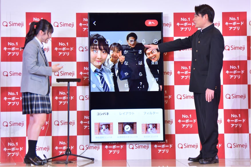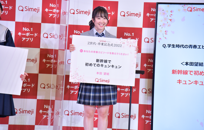 大人世代代表としてお笑いコンビ平成ノブシコブシの吉村崇さん、徳井健太さん、Z世代代表として現役高校生の本田望結さんと今年成人式を終えたばかりの山之内すずさんが登壇。アプリ「Simeji」のユーザーに「卒業」と「青春」をテーマにアンケートを実施、結果をランキング化し、イベント内で発表しました。さらにSimejiの新しいWeb CMを初公開!