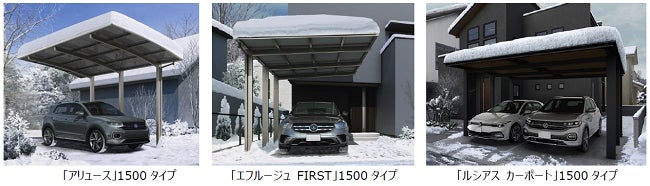 カーポート主要3シリーズで積雪地域向けラインアップ拡充 「アリュース」「エフルージュFIRST」「ルシアス」シリーズの積雪50cm対応カーポート発売