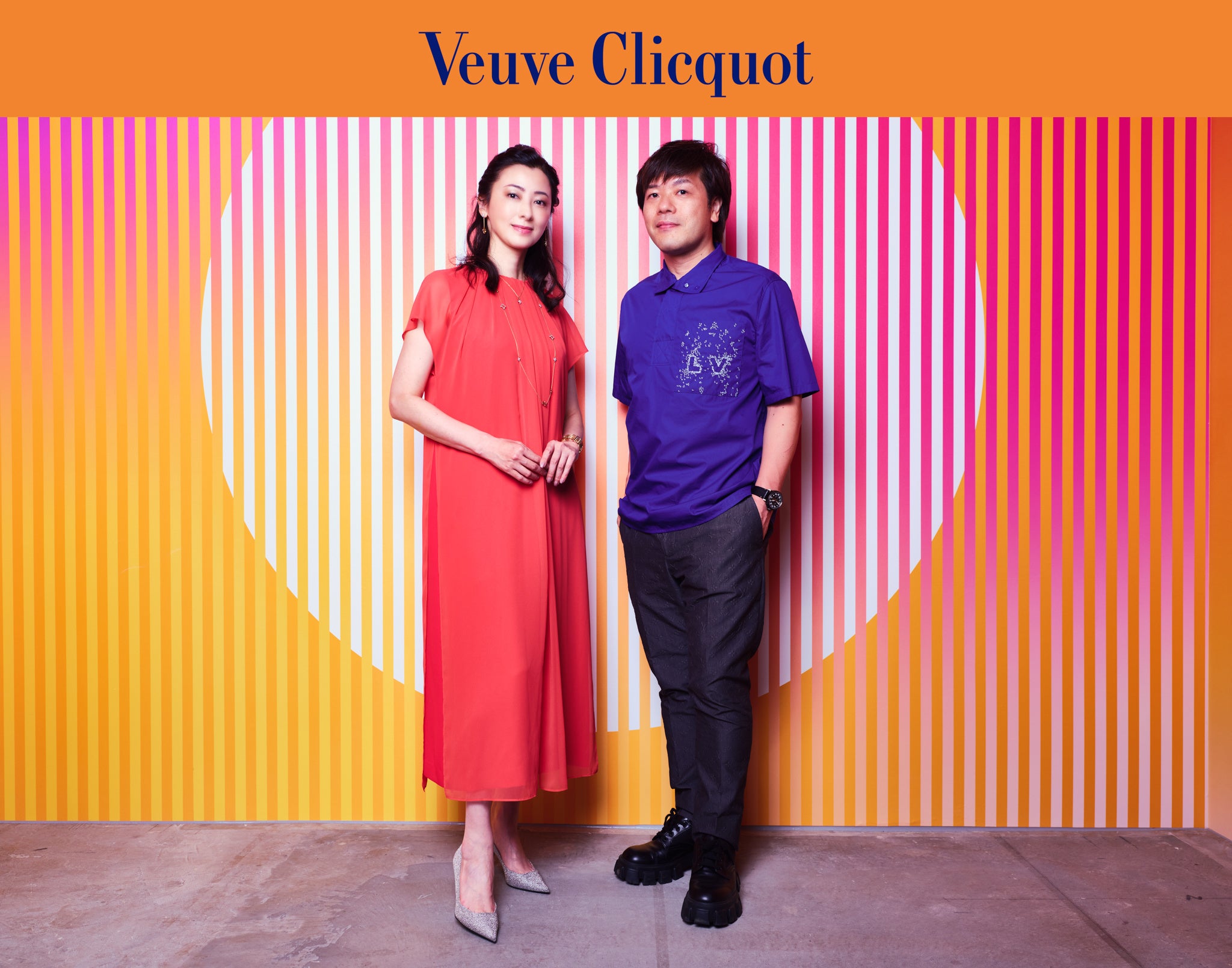 オープニングには夏木マリさん、冨永愛さん、加藤雅也さん、山田優さん、河北麻友子さんら豪華セレブリティもお祝いに駆けつけてくれました。 夏木マリさんは、“いつも料理をしながら飲んでいる“というシャンパーニュを片手に華麗に登場。「マダム・クリコは女性のパワーを持っている先輩。大胆で開放的なところをとてもリスペクトしている。」とシャンパーニュ地方の偉大な女性へ想いを馳せながら、「イノベーティブな作品が多く、古いものが革新的に前に進んでいる感じが素敵だった。」と世界各国のトップクリエイターのオリジナル作品が一堂に集結した、稀有な企画展について熱くコメント。また、煌びやかなスパンコールのドレスで登場した冨永愛さんは、「一番好きなのは、モニーク・フリードマンの黄色い部屋のような作品。裸足で入って太陽を感じる空間が素敵で入ってみたいと思った。」とヴーヴ・クリコのブランドカラーである「イエロー」の持つポジティブさを十分に引き出した作品について感想を述べました。 加藤雅也さんは「マダム・クリコの肖像画の額にまでペイントする発想は面白くて、一番印象的だった。」と、日本が誇る草間彌生さんが描くヴーヴ・クリコが持つ大胆さを表現したような作品に、感動した様子でした。「入った瞬間からパワーが伝わる空間で、女性の強さを感じた」とヴーヴ・クリコの「ソレール=太陽のように輝くブランド」を体現する空間について、興奮気味に語ってくれた山田優さん。しなやかさと力強さを感じさせる個性的なセットアップで、女性らしさをファッションで表現していました。