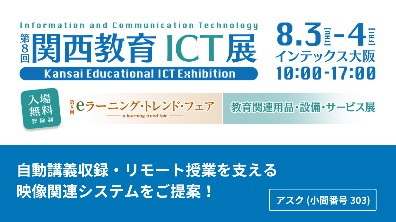 株式会社アスク ( 本社 : 東京都千代田区 ) は、 2023年8月3日 (木) ・ 4日 (金) にインテックス大阪にて開催される『第8回 関西教育ICT展』に出展します。