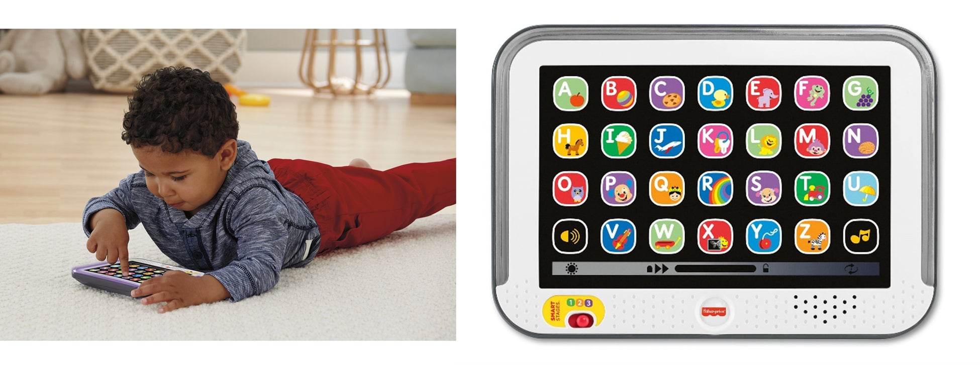【Point】 ✓ 90年以上の歴史をもつベビー・プリスクール向け玩具グローバル売上No.1*ブランド] 「フィッシャープライス」から、1才のお子様の誕生日プレゼントにも最適な新商品が登場! *The NPD Group/2022/USD ✓ 画面には28個のアプリボタンが表示され、ライトや100以上の歌、言葉、動物などのフレーズが起動。 ビートに合わせてマルチカラーのライトが光り、楽しみながら英語を学ぶことができる! シリーズ初の英語コンテンツのみのタブレット型知育おもちゃです。 ✓ 遊びと学びの内容を切り替えられる「スマートステージ」機能を搭載! お子様の成長や発達段階に合わせて最適なレベルを3段階から選択できる! |