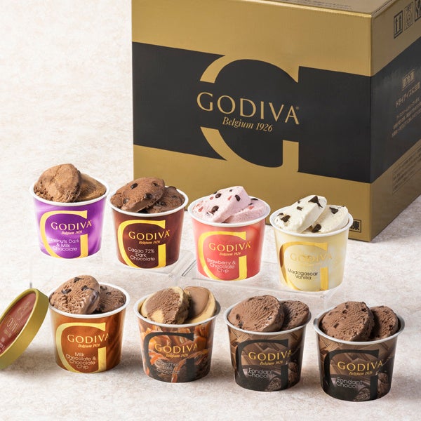 定番のカップアイスに加え、期間限定の2種のフレーバーを含む計7種8個をバラエティ豊かに詰め合わせました。ゴディバのプレミアムなチョコレートを、さまざまなフレーバーで味わえます。