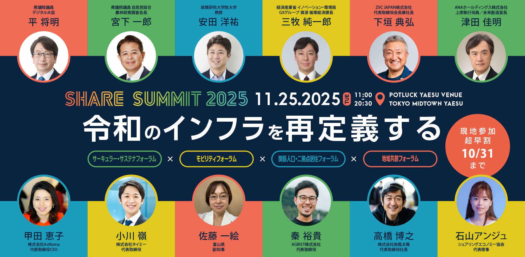 日本最大シェアリングエコノミーの祭典「SHARE SUMMIT 2025」、11月25日(火) に開催決定!