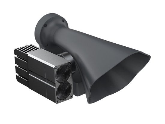 超高音圧で遠くまではっきりと音声を伝えることができ、有効範囲は最大500mです。小型、軽量、低消費電力設計となっており、救助や捜索、災害現場でも活躍します。
