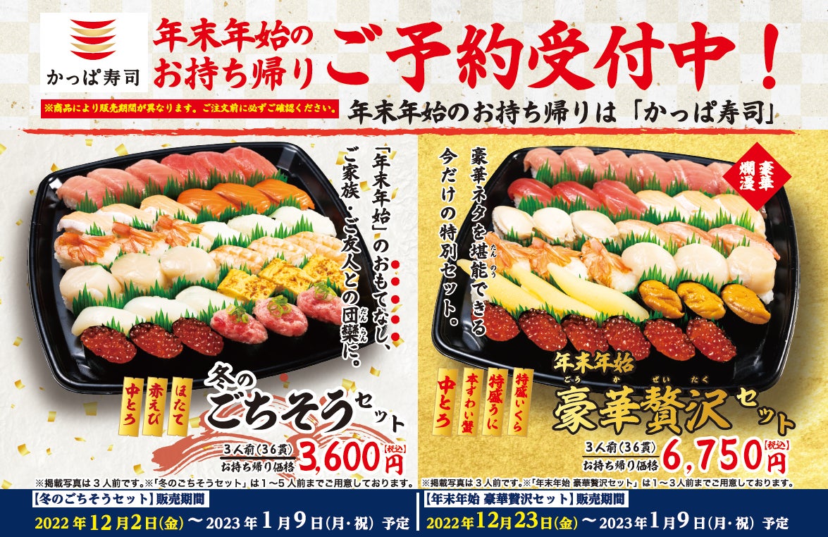 【冬のごちそうセット】2022年12月2日(金)〜2023年1月9日(月・祝) 【年末年始 豪華贅沢セット】2022年12月23日(金)〜2023年1月9日(月・祝) かっぱ寿司全店にて