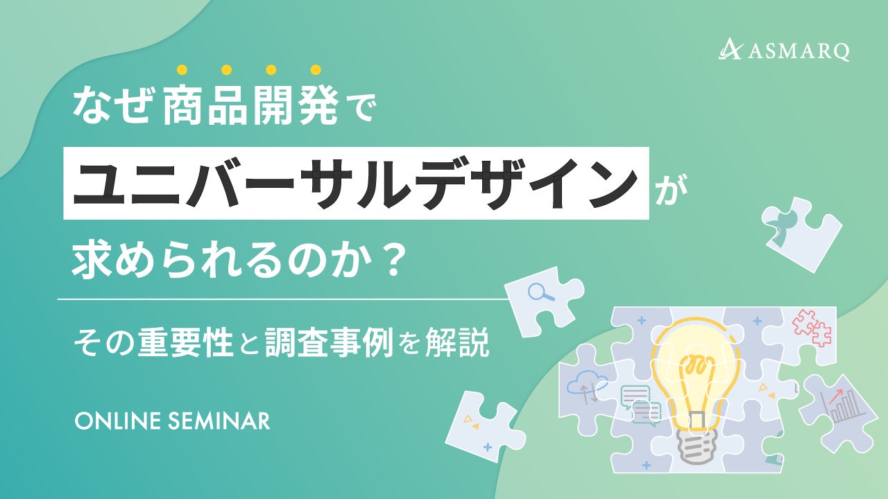 株式会社アスマーク(東京都渋谷区東、代表取締役:町田正一)は、2025年07月23日(水)13:00に、「ユニバーサルデザイン」をテーマに、基礎知識や商品開発の現場で活用できる実践的な設計視点調査事例を交えて解説する新セミナーの開催についてご案内いたします。