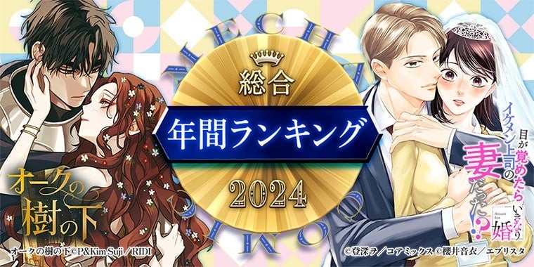 2024年の年間ランキングで1位を獲得したのは『オークの樹の下』!続いて、2位『いつわりの愛~契約婚の旦那さまは甘すぎる~』、3位『いきなり婚 目が覚めたらイケメン上司の妻だった!?』がランクインしました。