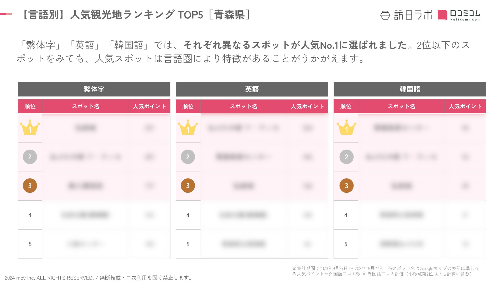 <インバウンド人気観光地ランキング TOP10[青森県編]>