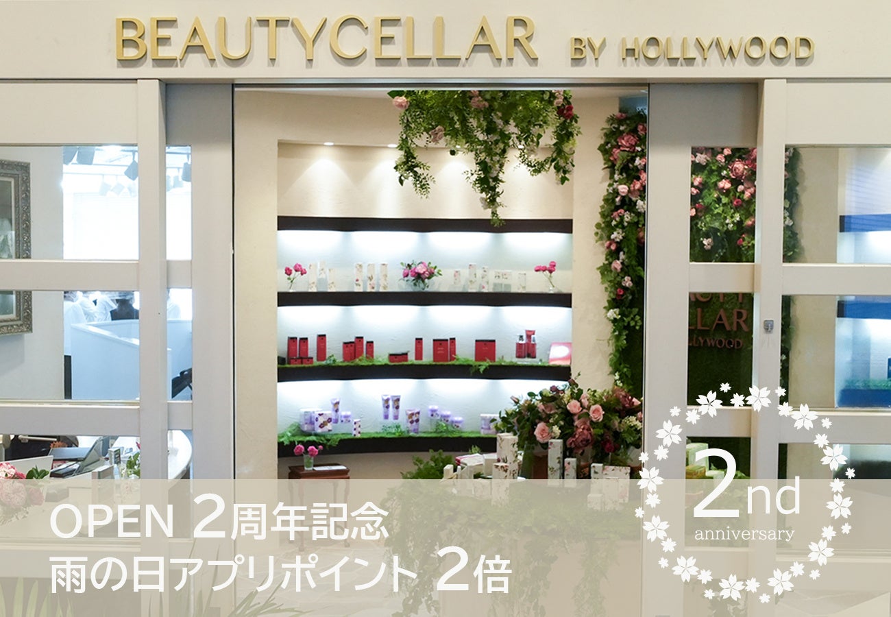 OPEN 2周年記念&雨の日 Wキャンペーン 『BEAUTY CELLAR by HOLLYWOOD』六本木ヒルズ本店 アプリポイント2倍 7月限定開催