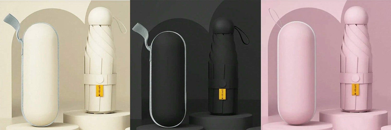 1万円以上ご購入いただいたお客様限定で、持ち運びに便利な晴雨兼用の折り畳み傘(ベージュ/ピンク/ブラックのうち1本)をプレゼントいたします。