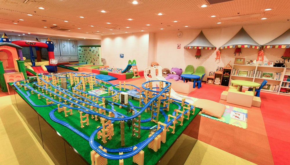 ホテル館内には、地域最大級のキッズルームがあり、ボールプールやボルタリング、エアートランポリやプラレールなど、1日居ても飽きないほど充実した遊びが満載です。