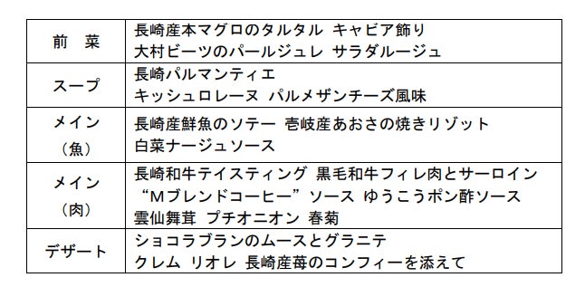 長崎では冬になると水揚げされる魚種が増え、脂がのり、根菜類は甘く、 長崎和牛は肉質が締まって美味しくなります。それらの食材の魅力を活かす ため、シンプルな調理法でありながら塩加減と時間、加熱温度に気を使うの は、料理人の力量を試される季節かもしれません。 街は賑わいを見せ、イベントごとの多いこの季節、“大切な人がいつも笑顔で いられますように!”との思いを込めたメニューをご準備いたしました。 ぜひ、皆さまのご利用をお待ちしております。