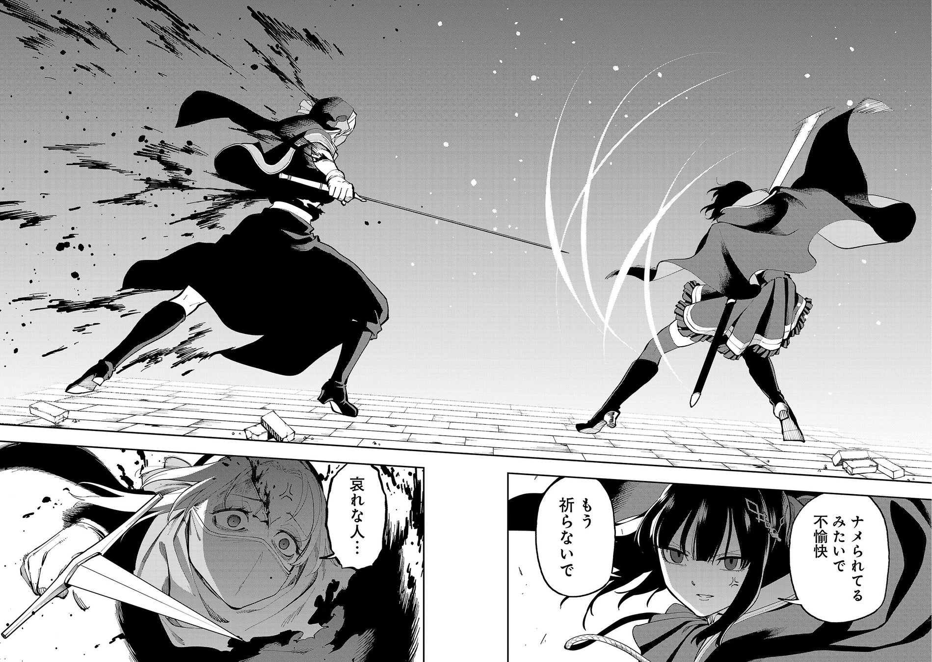 ベリル、フィッセル、クルニの三人は、捕らわれたミュイを助け出すため、逃亡するスフェン教の司教と教会騎士団を追撃する!フィッセルの相手は、「奇跡」の使い手ウロ。圧倒的な魔力量を持つウロにフィッセルは苦戦を強いられるが・・・。クルニ対ロバリー、そして「ゼノ・グレイブルの剣」を手にしたベリル対「騎士狩り」シュプールの剣戟の行方は!?