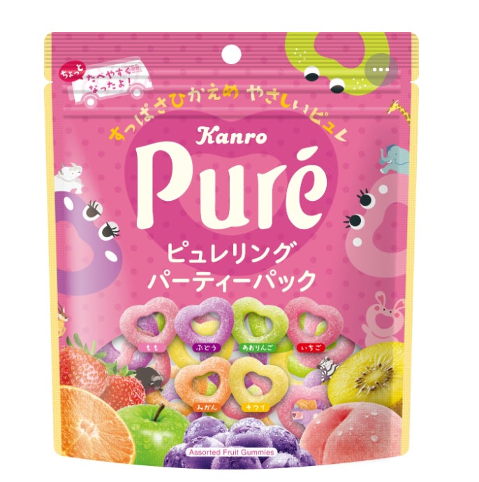 この度、「ピュレリング」「ピュレリングパーティーパック」「ピュレリングアソートパック」の3品をリニューアル発売します。グミ粒の大きさを従来よりも小粒化し、さらに歯につきにくい食感に仕上げることで、お子様の食べやすさを追求しました。