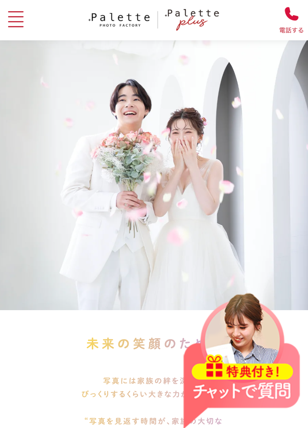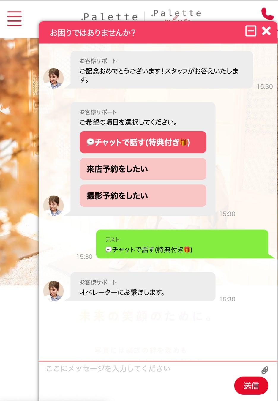 北海道札幌市を中心に展開するフォトスタジオ「写真工房ぱれっと・Palette+plus(本社/有限会社三景スタジオ)」は、これまで以上にお客様に手軽で迅速なサービスをご提供するため、登録不要で質問や予約が可能なチャットサービスの導入を開始いたしました。お客様のタイミングに合わせてよりスムーズなサポートを実現いたします。