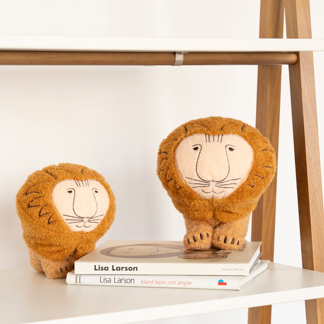 リサのぬいぐるみ「抱きしめられるリサ・ラーソン」は、陶芸家リサ・ラーソンが、陶芸以外の商品制作に進出した最初期のグッズです。我々、日本サイドの想いと、その想いを受け止めたリサの想いが、最初に結実した作品でもあります。その想いは、かわいいもの大国である日本の皆さんに伝わり、ぬいぐるみのライオンは、陶器を超える人気を得て、リサが日本中に支持されるきっかけとなりました。日本のリサ・ラーソンは、最初から抱きしめることができた!最初から夢が実現していたのです。このことは、私達にとっても決して忘れることができない特別な意味があるのです。今回のニューバージョンは、原点に戻りゼロから作り直したことで、リサと一緒に思い描いた当初のプランにより近づきました。