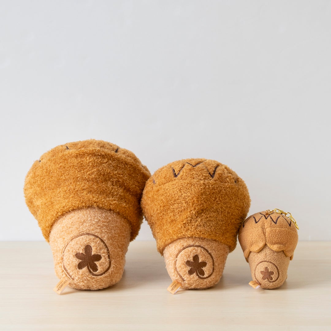 サイズはMとSの他に、持ち運べるマスコットタイプもご用意しております。現在オンラインショップ「トンカチストア」( https://shop.tonkachi.co.jp )にてご覧いただけます。
