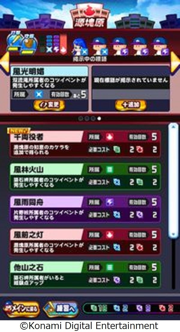 また、イベキャラとの練習で得られる「知恵のカケラ」を集めて「標語」を各高校に掲示できれば、練習の効果を高めるとともに「秘術融合」の助けにもなります!