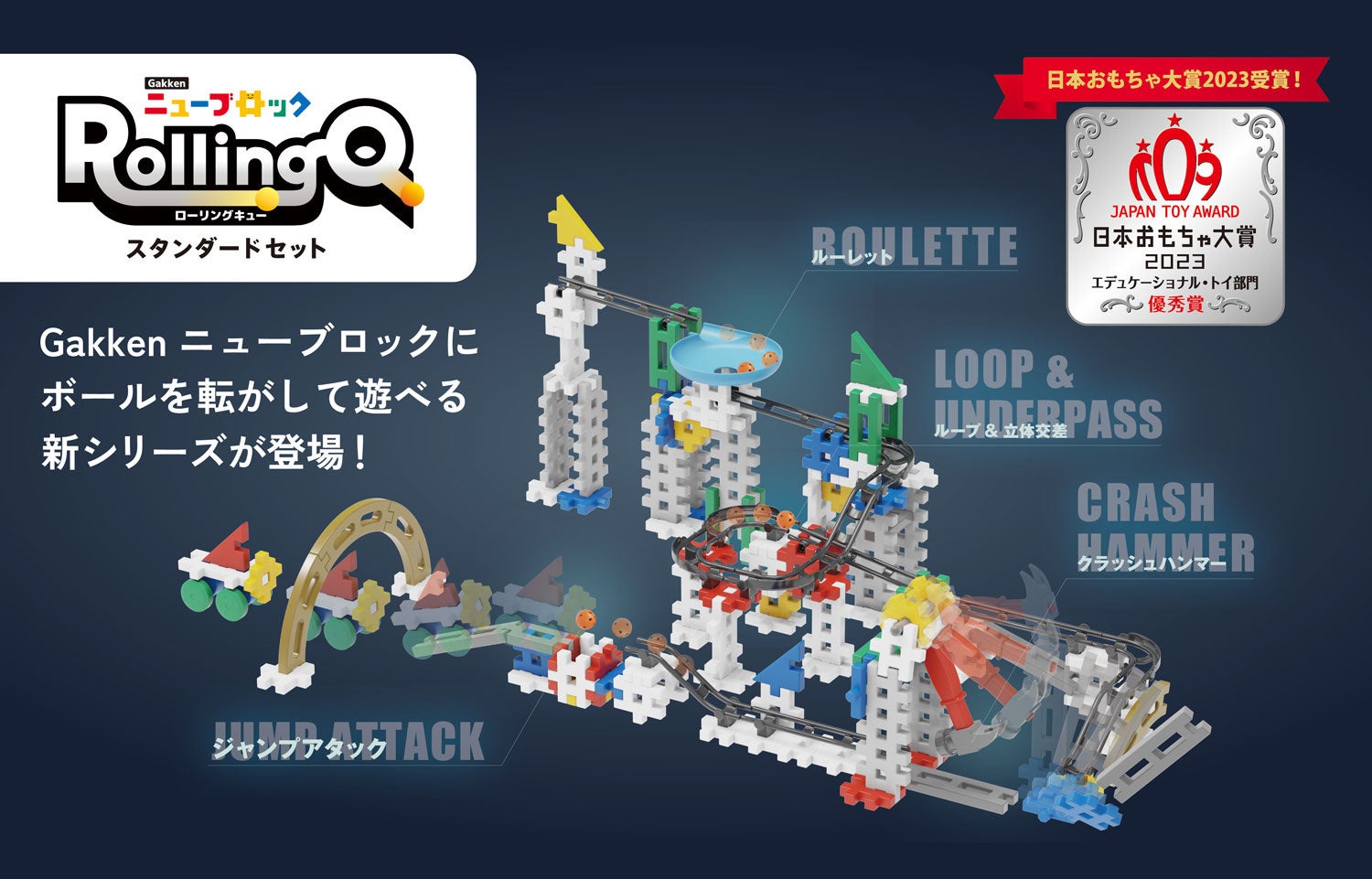 新商品「Gakkenニューブロック ローリングキュー」の大型作品体験コーナーが出現!ボールの動力を利用した、いろいろな仕掛けを体感することができます。