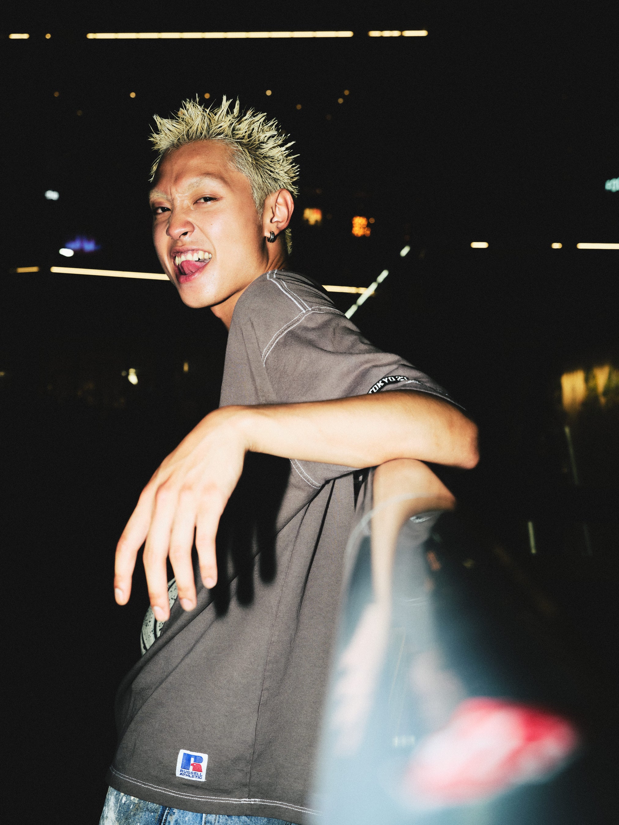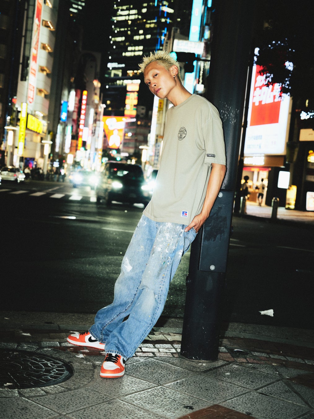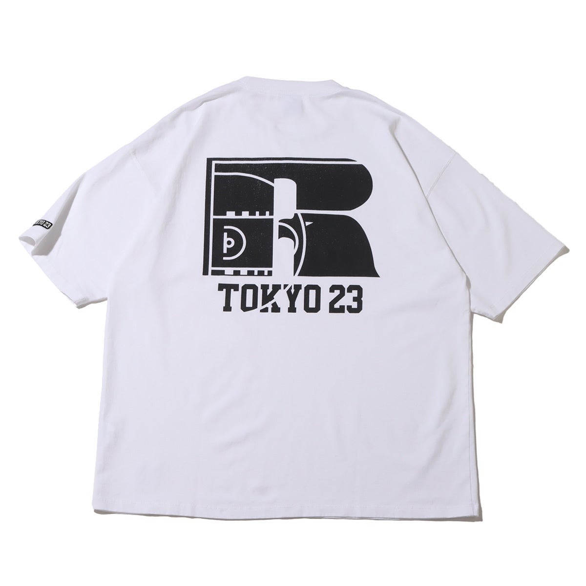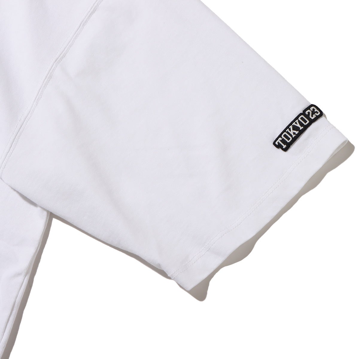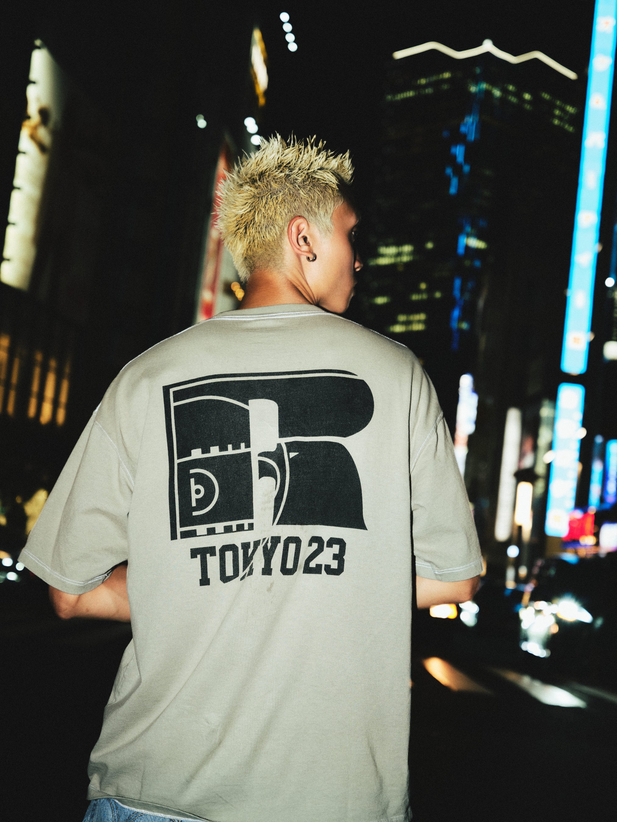 今回のコラボレーションのためにスペックした「ラッセル アスレティック」スクエアネームが裾に付属し、左袖口には「トウキョウ 23」のオリジナルワッペンがアクセントとしてプラスされています。