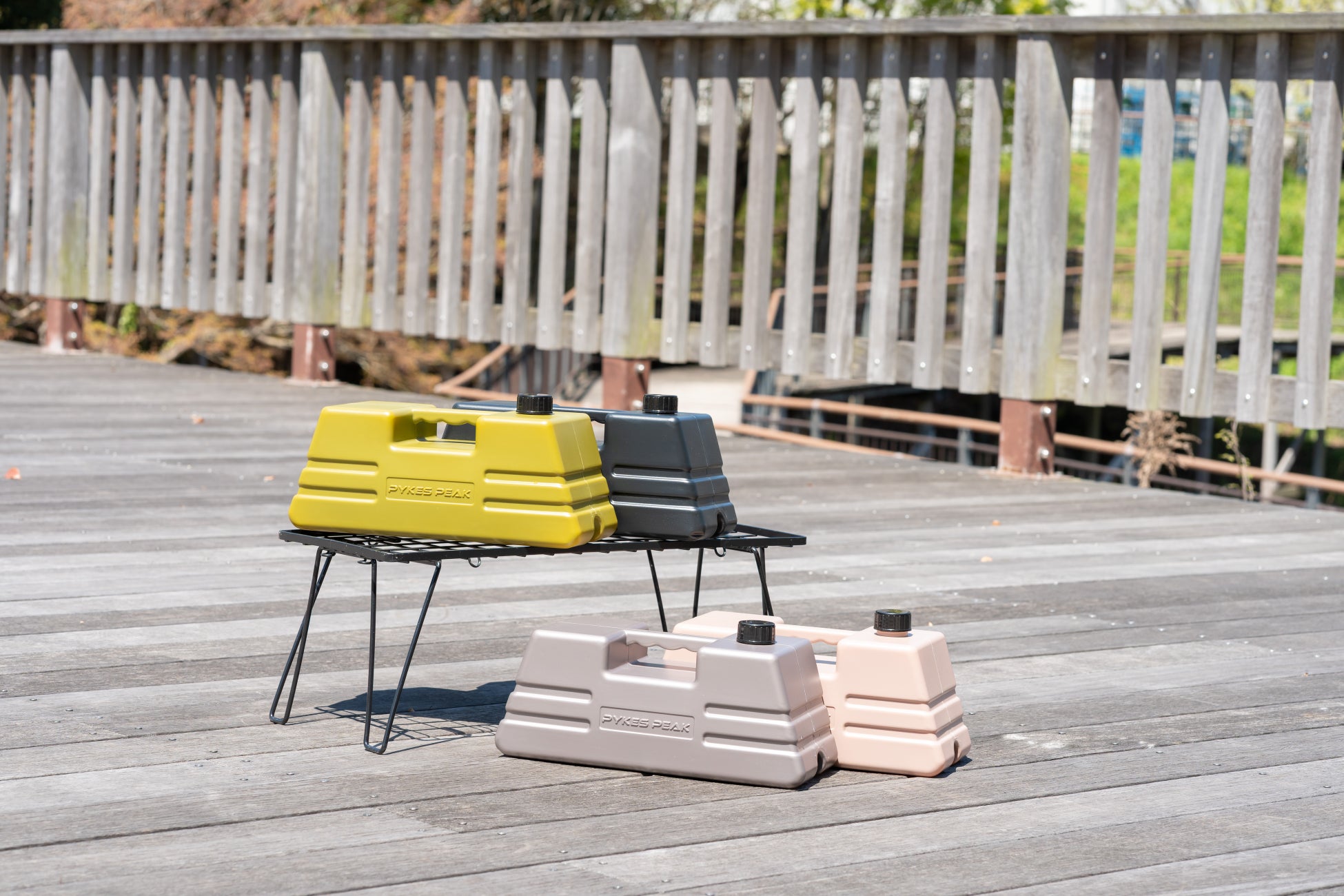 アウトドアブランド「PYKES PEAK(パイクスピーク)」から、設営補助アイテムとして新たに登場した『ウエイトタンク』は、空の状態では約400gと超軽量。現地で水を注げば、1個あたり約6kgの重石として活躍します。