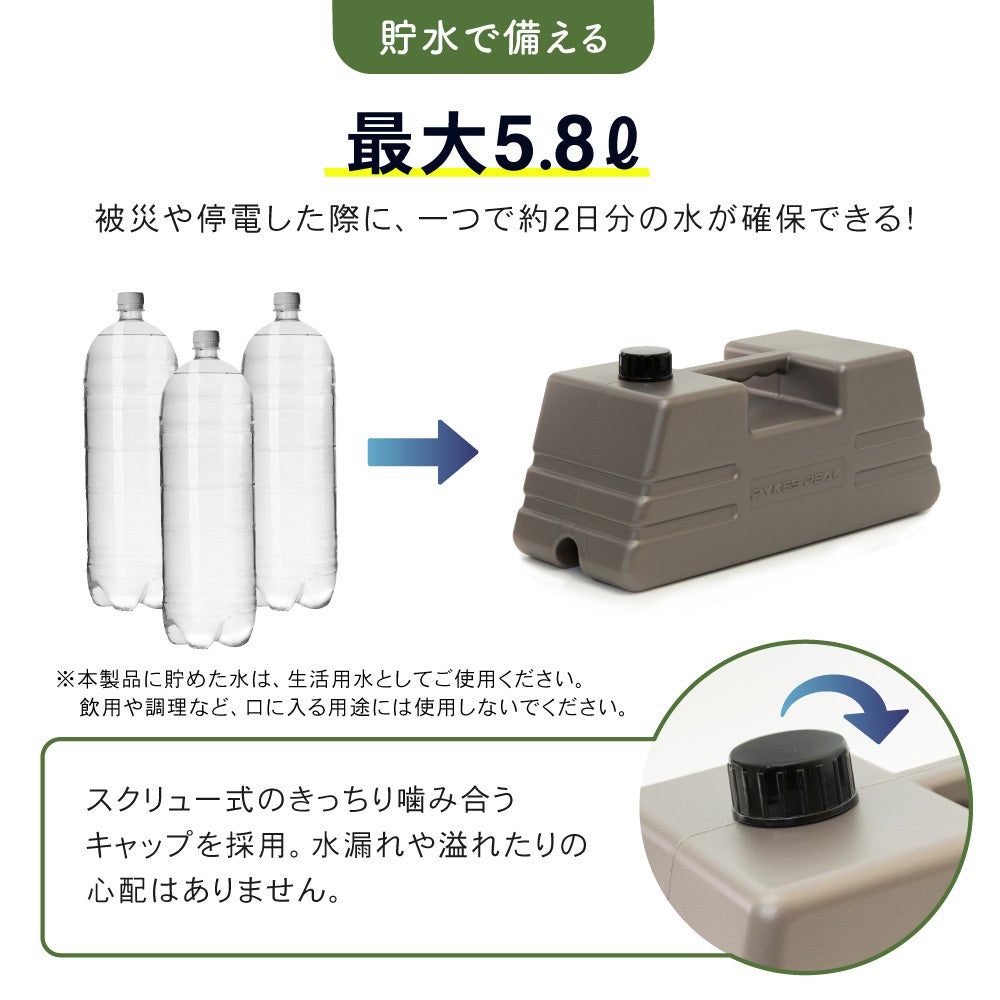 本製品はただの重石にとどまりません。約6Lの容量を活かし、防災用の生活用水タンクとしても使用可能です。災害時のトイレ用水、清掃用水の確保、仮設トイレ設営時の固定重石など、非常時にも備えられるアイテムとして注目されています。
