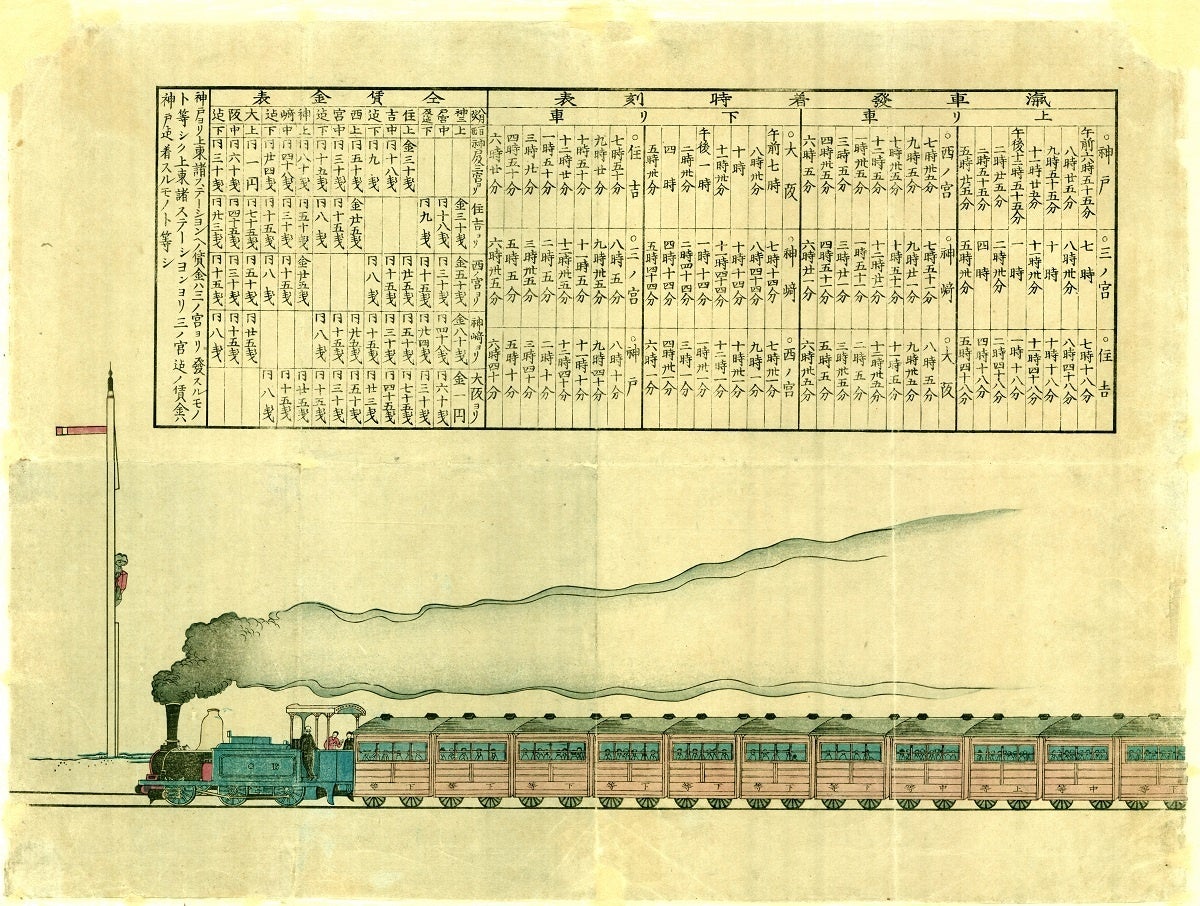 ・150周年記念グッズ「神戸~大阪間 汽車発着時刻表 同賃金表(明治初期)