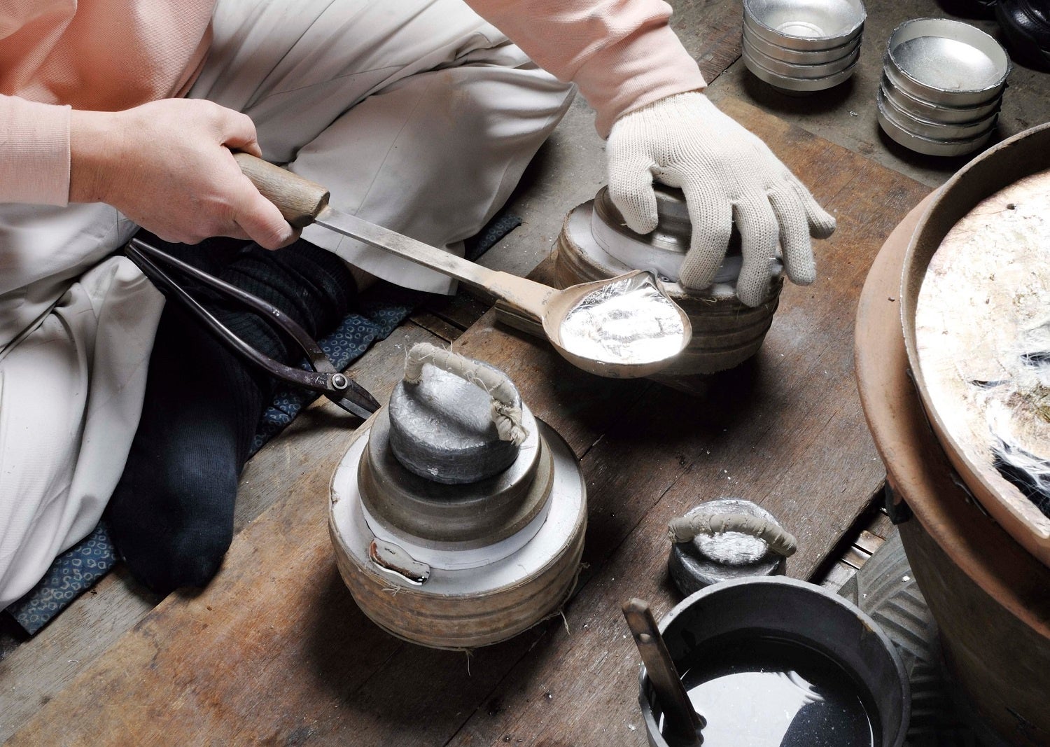 大阪錫器は「現代の名工」今井達昌(伝統工芸士)を代表とし、国認定の5名の伝統工芸士を含む職人集団により、伝統的工芸品“大阪浪華錫器”の製作を専業としています。同社の技術は、江戸時代後期の初代伊兵衛(錫伊)に発し、代々大阪で隆盛を極めました。昭和時代に「大阪錫器株式会社」が設立され、今日まで伝統工芸の技術と育成が伝承されました。時と共に技術・技法は洗練され、一部は現代にマッチした形へと変化しましたが、そのモノづくりの技と精神は今も引き継がれています。