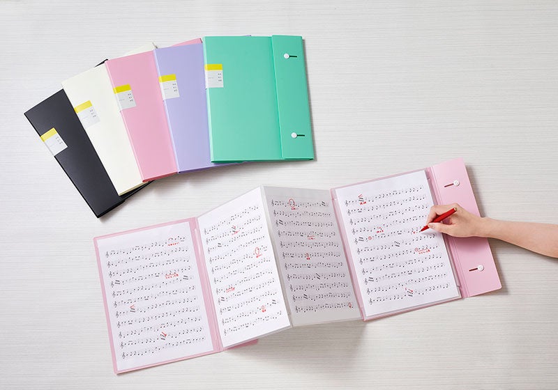 書類を入れたまま文字を書き込める「カキコ」シリーズに、楽譜の収納に最適なジャバラタイプが新登場! クリアーファイル「カキコ」ジャバラタイプ 発売