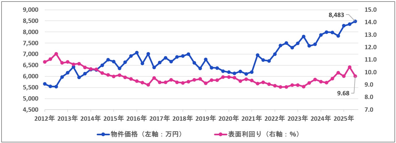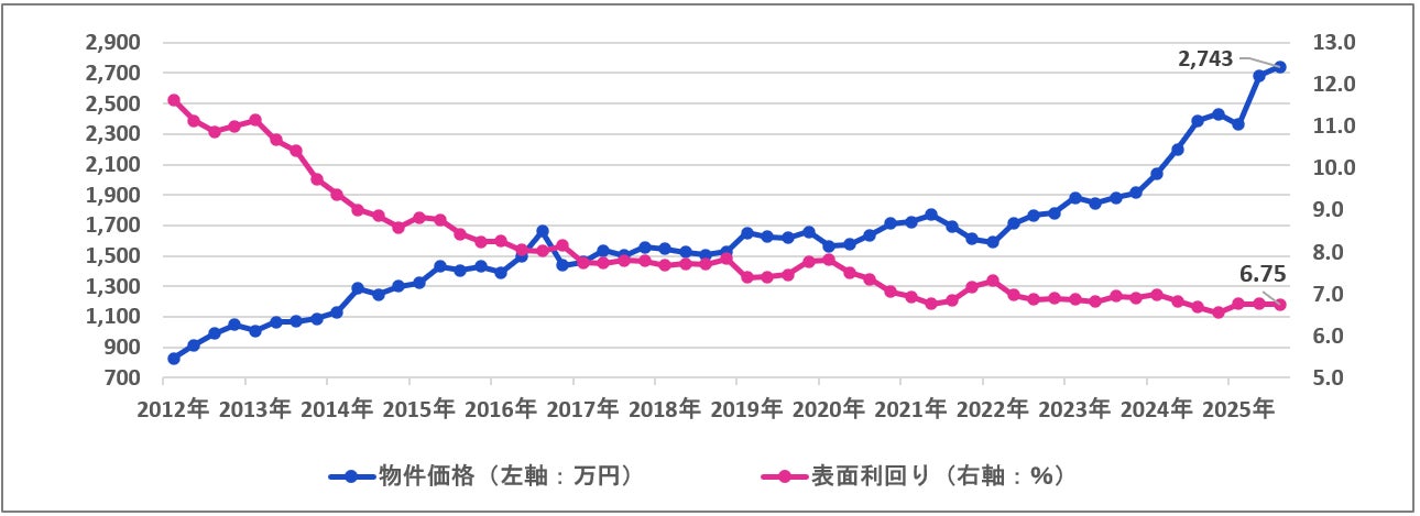 ・一棟アパート価格は3四半期連続で上昇し、2012年の集計開始以来の過去最高額を更新