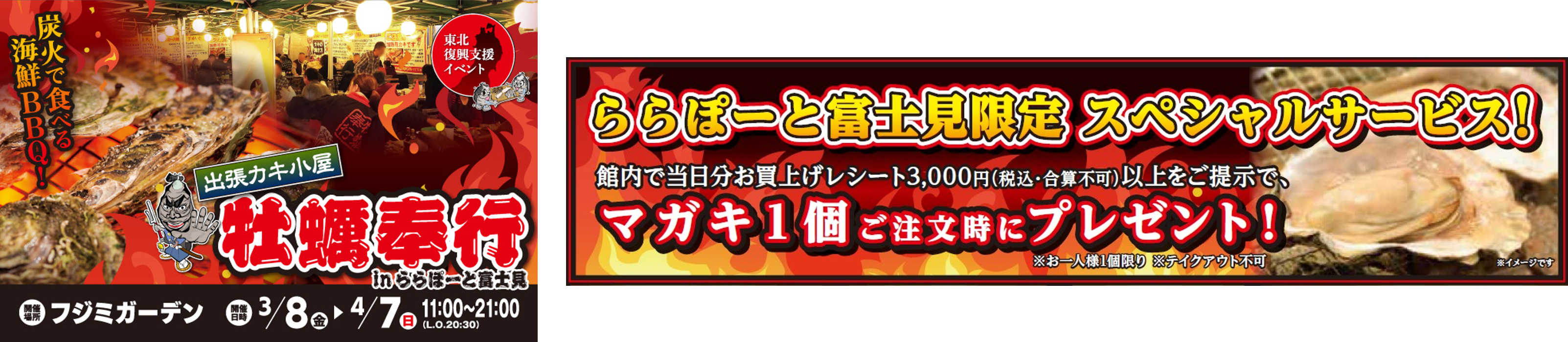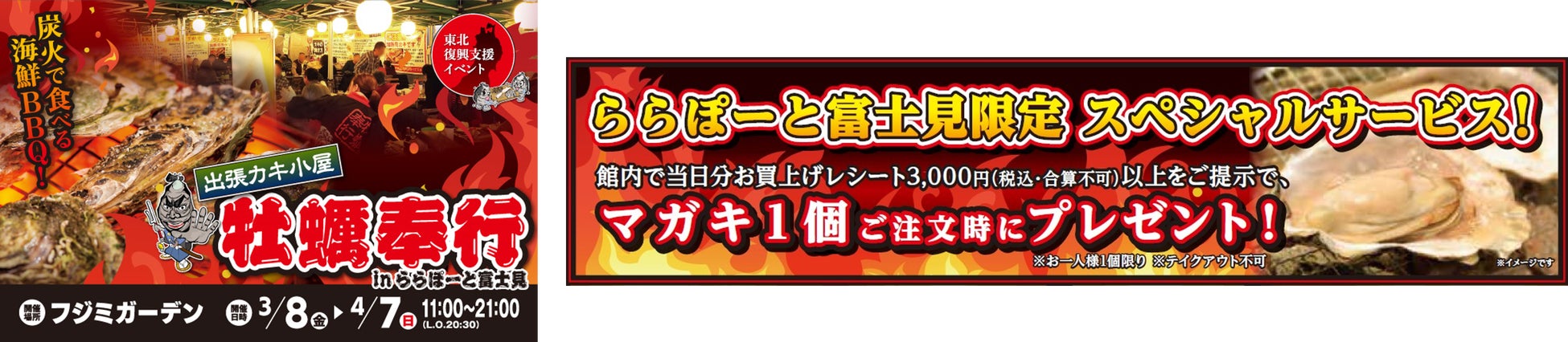 約5トンの殻付き牡蠣を特価販売!旬の牡蠣を炭火で楽しむカキ小屋がららぽーと富士見に登場。