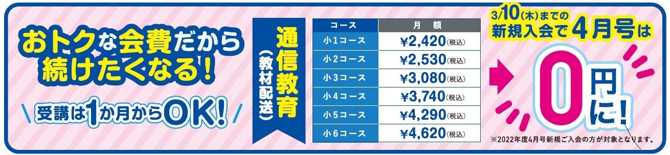 対象:2022年度4月号(教材配送)小1~小6コースのいずれかに新規でご入会いただいた方